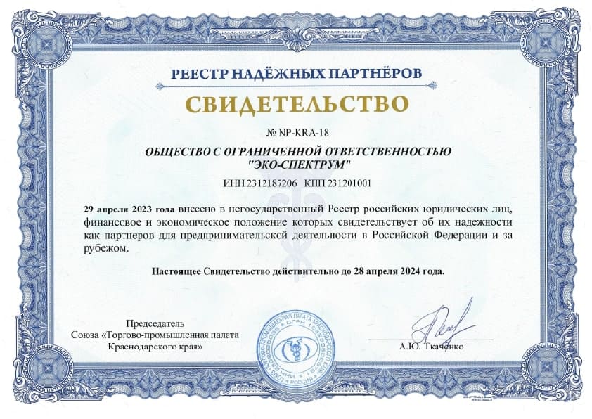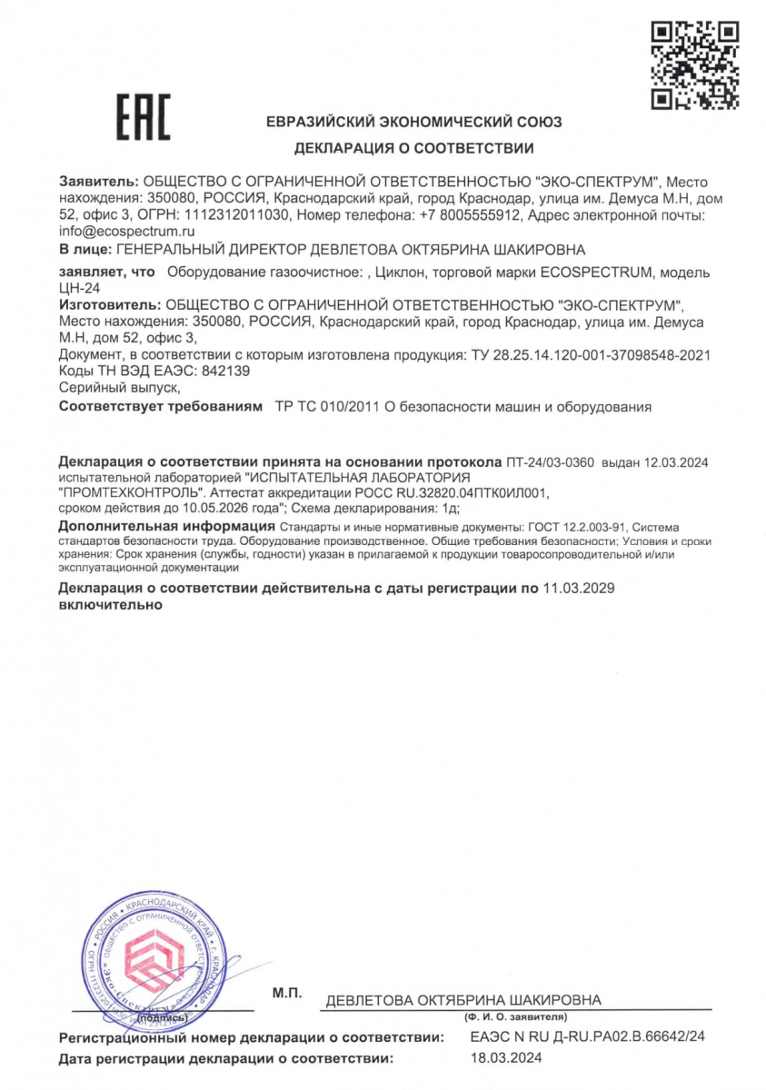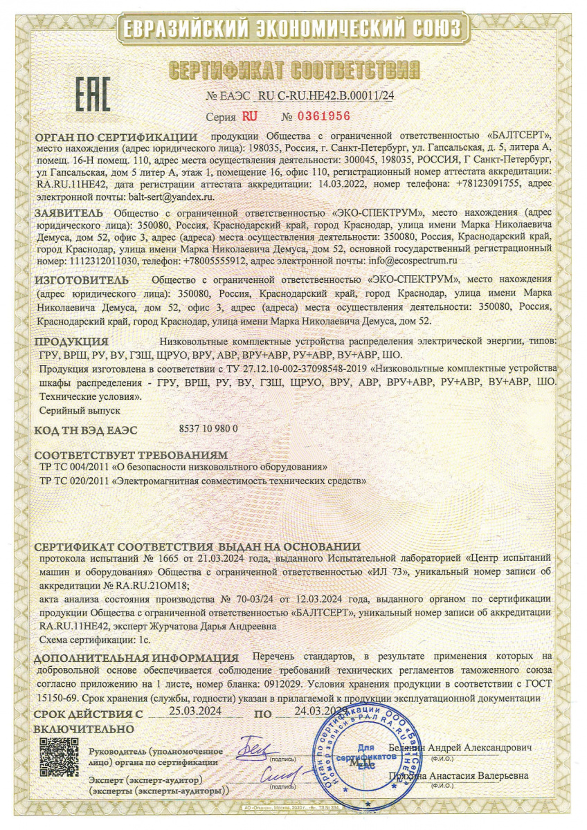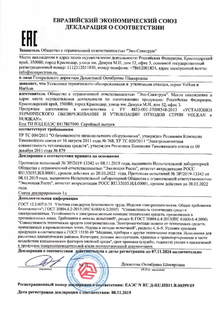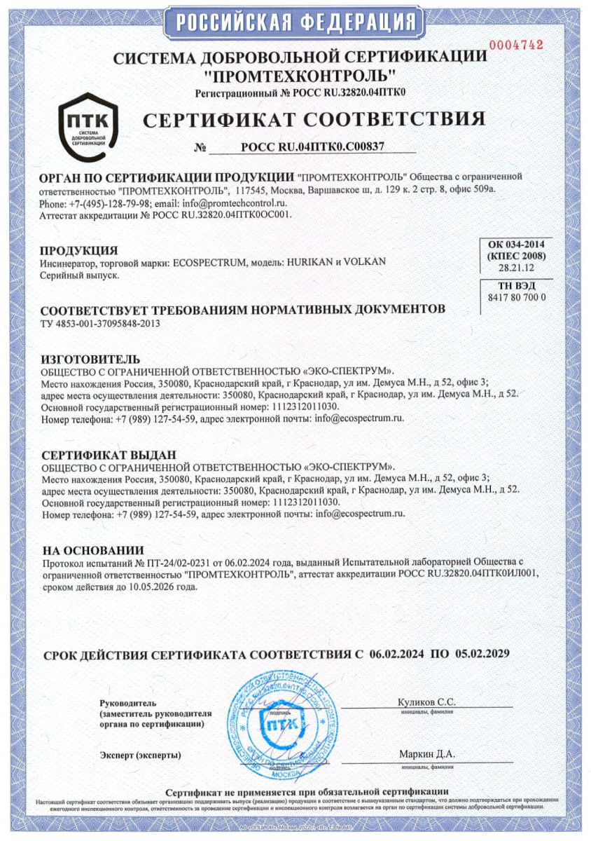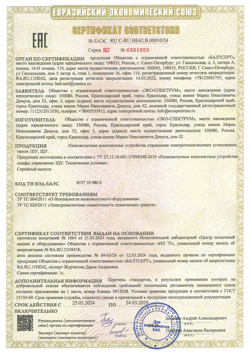 Yakıt depoları için uygunluk belgesi, modeller BT-D, BT-D(O), BT-M, BT-M(O), BT-O, BT-O(O), BT-P, BT-P(O) ) hacim 100, 150, 200 l., 250 l., 300 l., 400 l., 500 l., 600 l., 700 l., 800 l., 900 l., 1000 l. Eco-Spectrum LLC tarafından 08.18.22 tarihli 04-D-18 numaralı test raporuna dayanarak verilen seri üretim sertifikası.