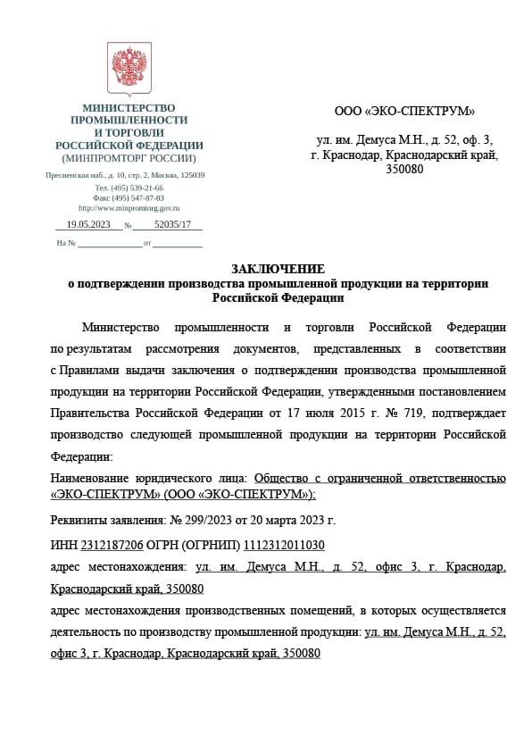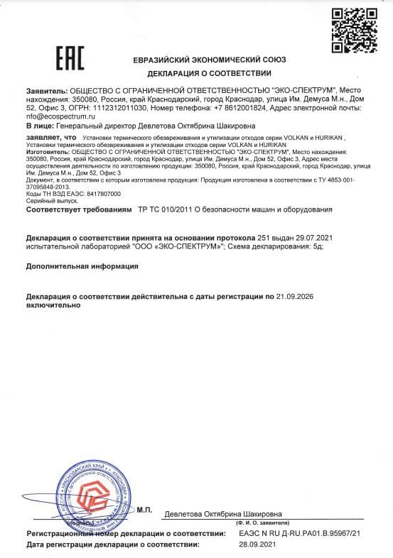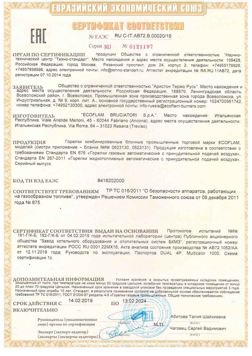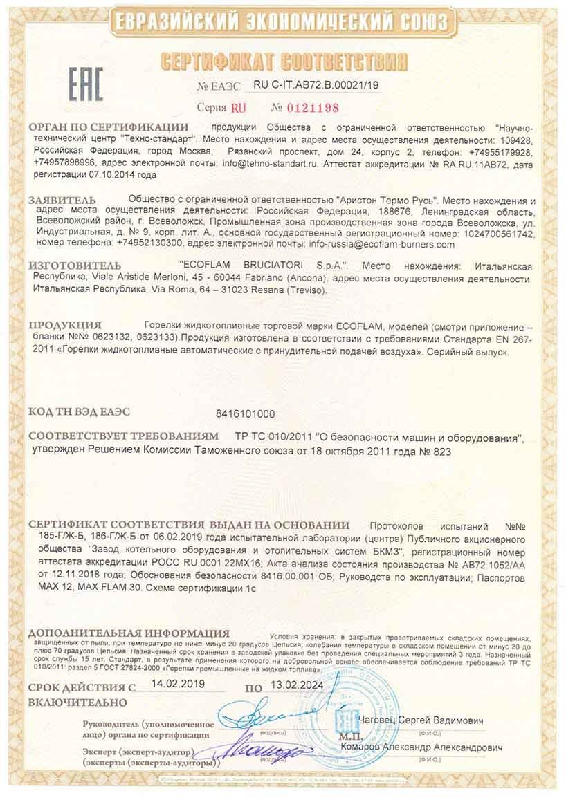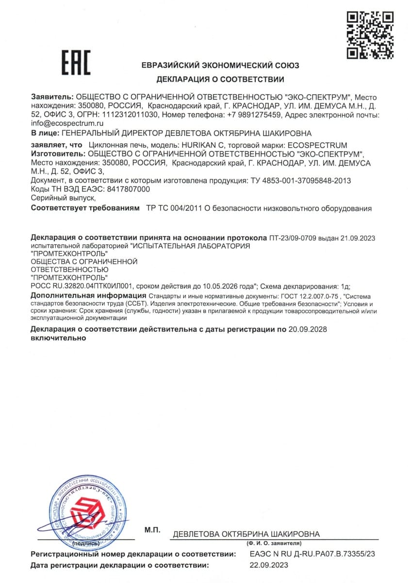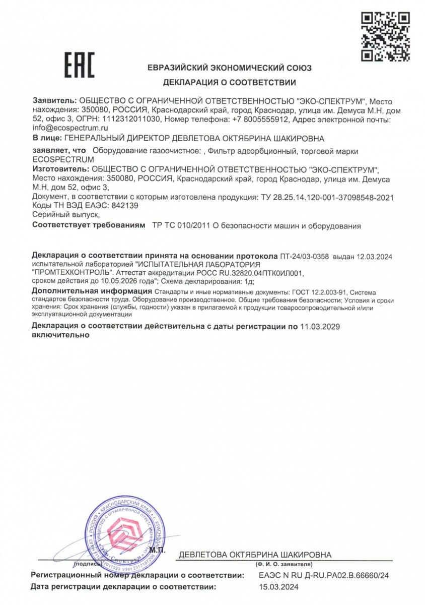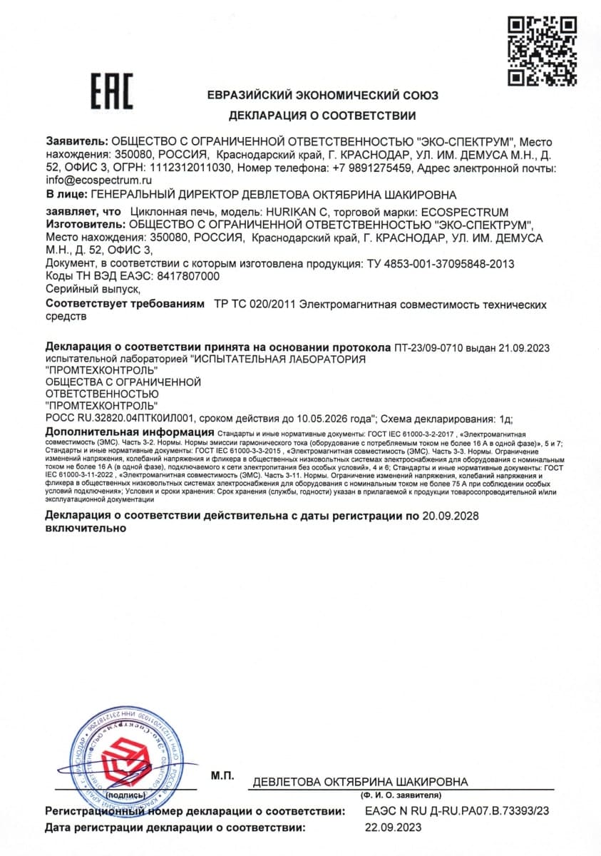 Yakıt depoları için uygunluk belgesi, modeller BT-D, BT-D(O), BT-M, BT-M(O), BT-O, BT-O(O), BT-P, BT-P(O) ) hacim 100, 150, 200 l., 250 l., 300 l., 400 l., 500 l., 600 l., 700 l., 800 l., 900 l., 1000 l. Eco-Spectrum LLC tarafından 08.18.22 tarihli 04-D-18 numaralı test raporuna dayanarak verilen seri üretim sertifikası.
