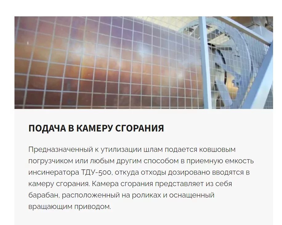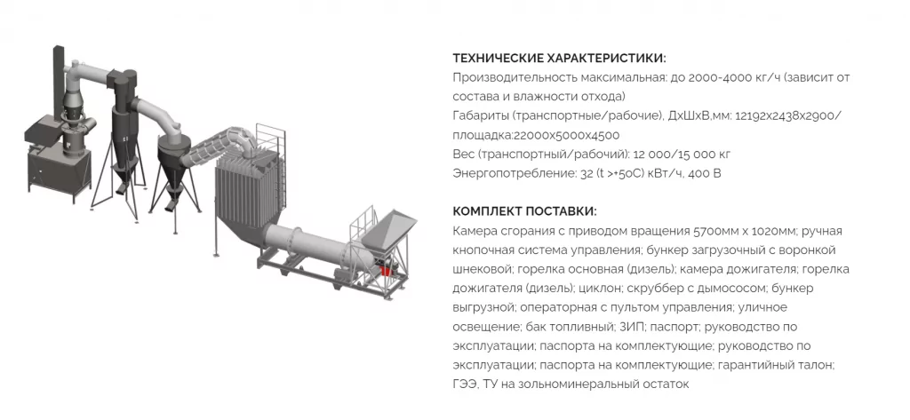 Отдельное внимание стоит уделить роторным инсинераторам, которые благодаря своей конструкции, обеспечивают постоянное перемешивание отходов в процессе термического разложения, тем самым создавая условия для полной термодеструкции органической части отхода, образуя в качестве золы только минеральный остаток.